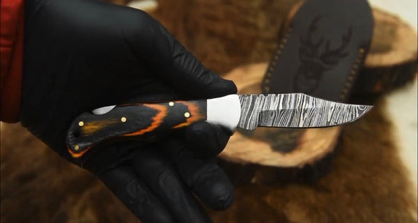 Handmade Wood Handle Folding Knife – 3" Damascus Blade with Back Lock